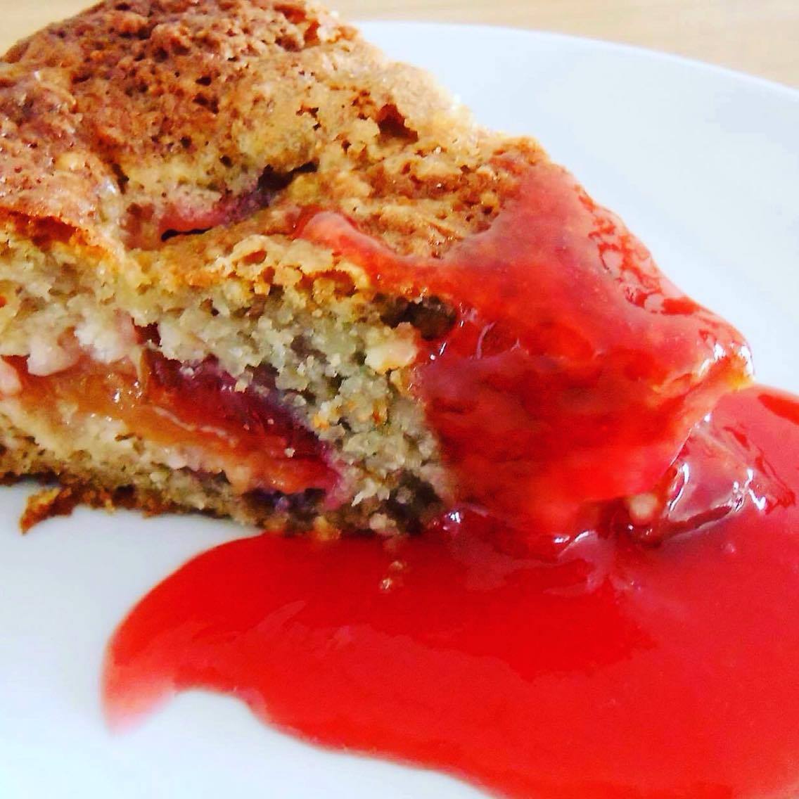 • If there is too much liquid in the plum stew, take the 1 1/2 cups needed for the cake and then put the remaining juice in a pan and reduce it at medium heat.  You will have a tasty, rich, and thick sauce to serve with the cake.