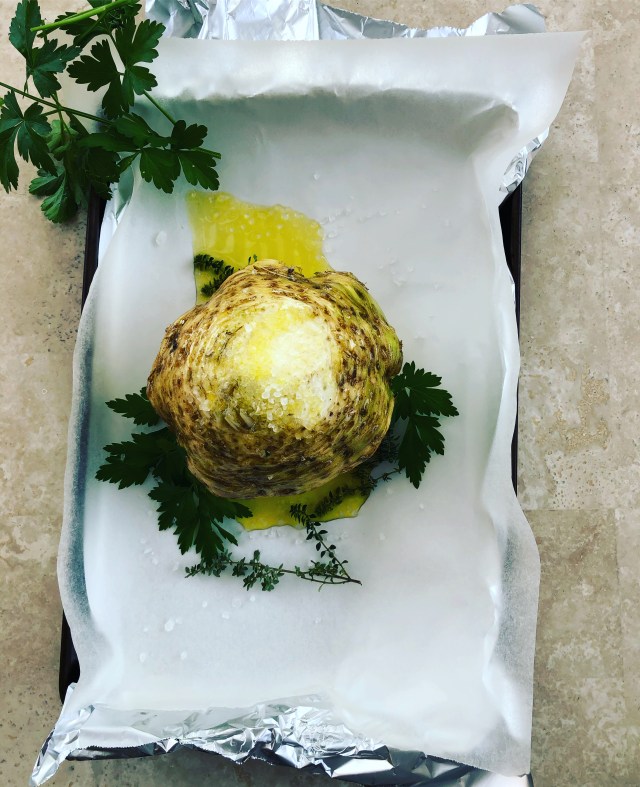 - Wrap each celeriac in baking paper and foil paper with olive oil, herbs and salt and pepper to taste.