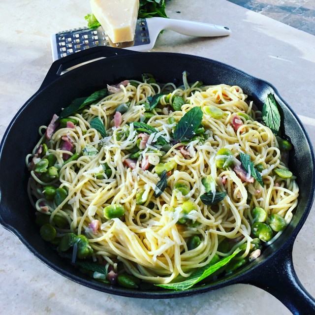 Broad beans and Pecorino cheese turn an ordinary pasta into something else. The cheese will make the beans sing!