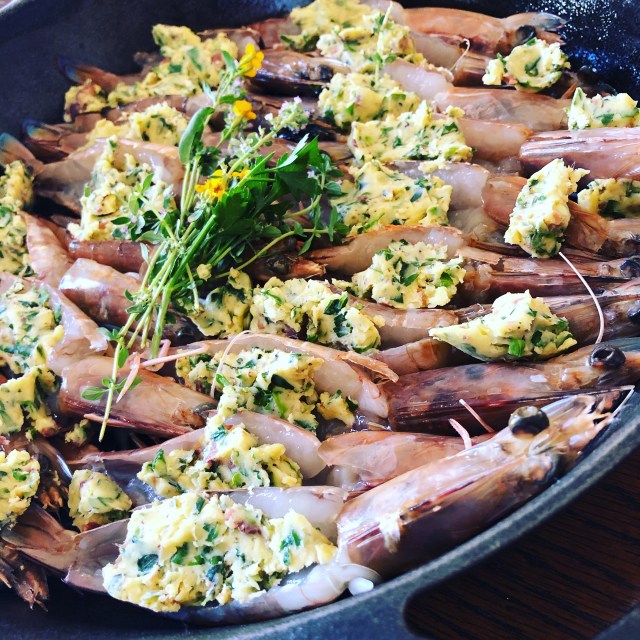 - Spoon the butter into the middle of each prawn. Use the remaining butter and spoon it all over the prawns.