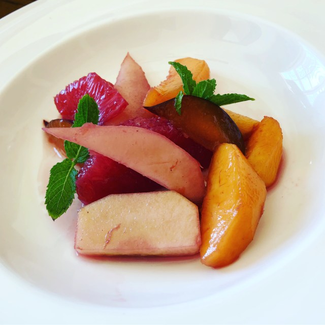 It is an easy throw together dessert using summer seasonal fruits such as apricots, peaches, and plums with a little touch of grapefruit, apples and pears.