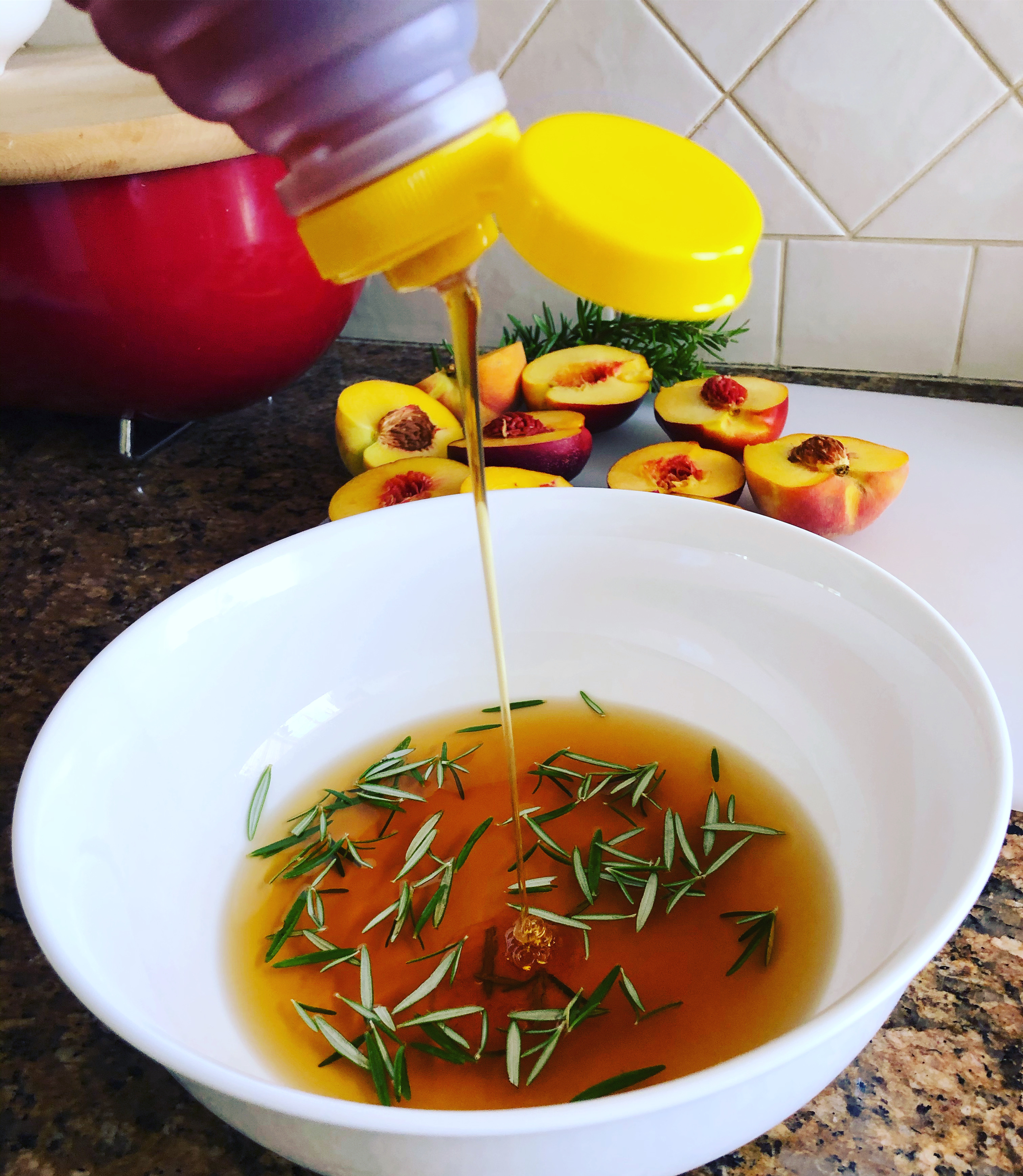 - 2 peaches, quartered and stoned