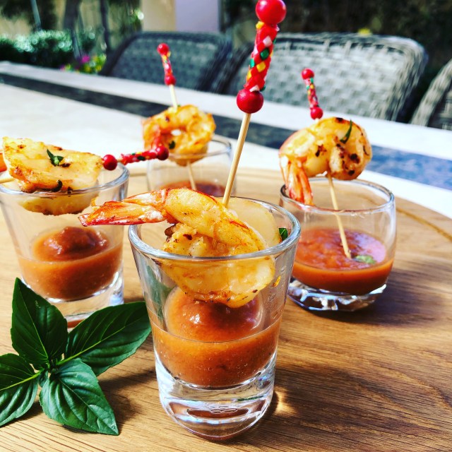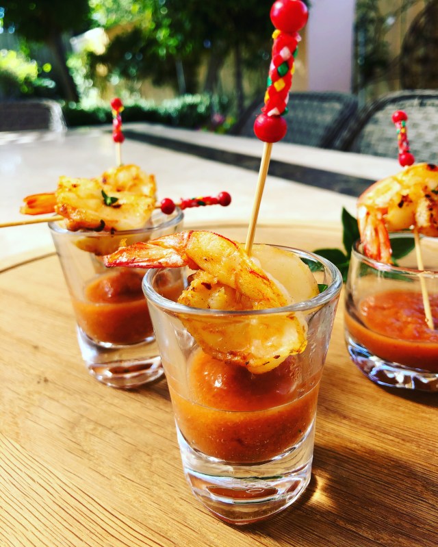 - Serve in shot glasses with the tomato salsa as dipping sauce.
