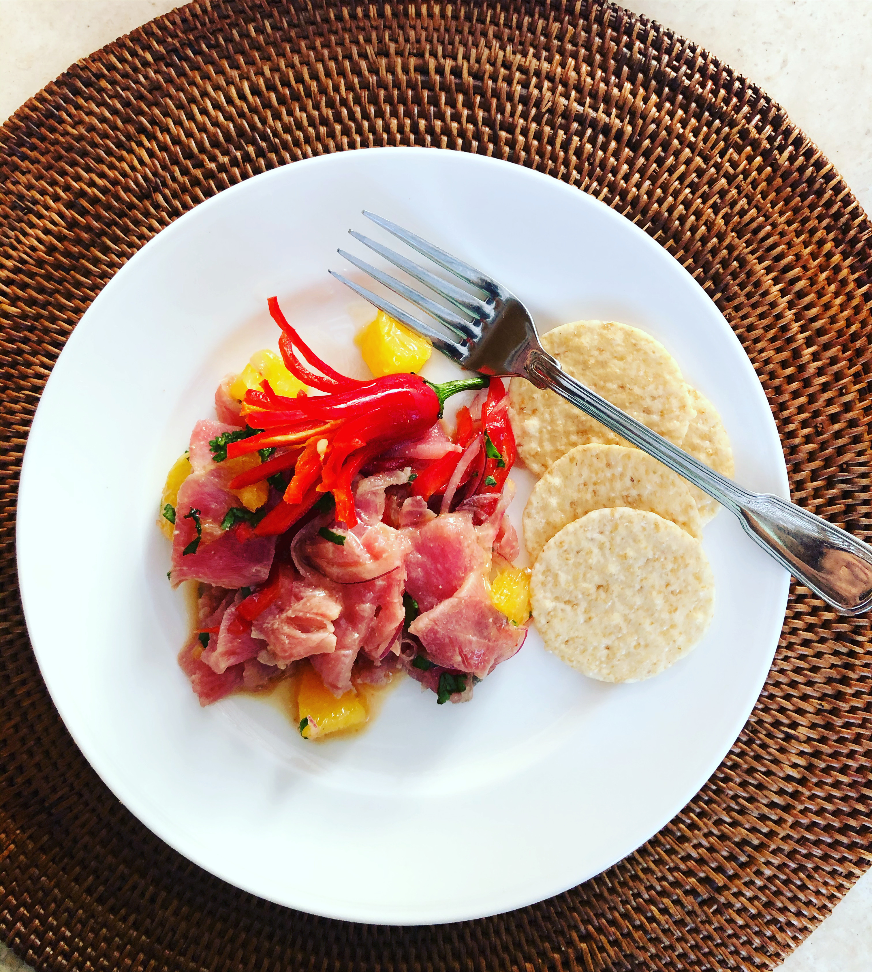 - You can serve the tuna tiradito with Japanese style crackers.