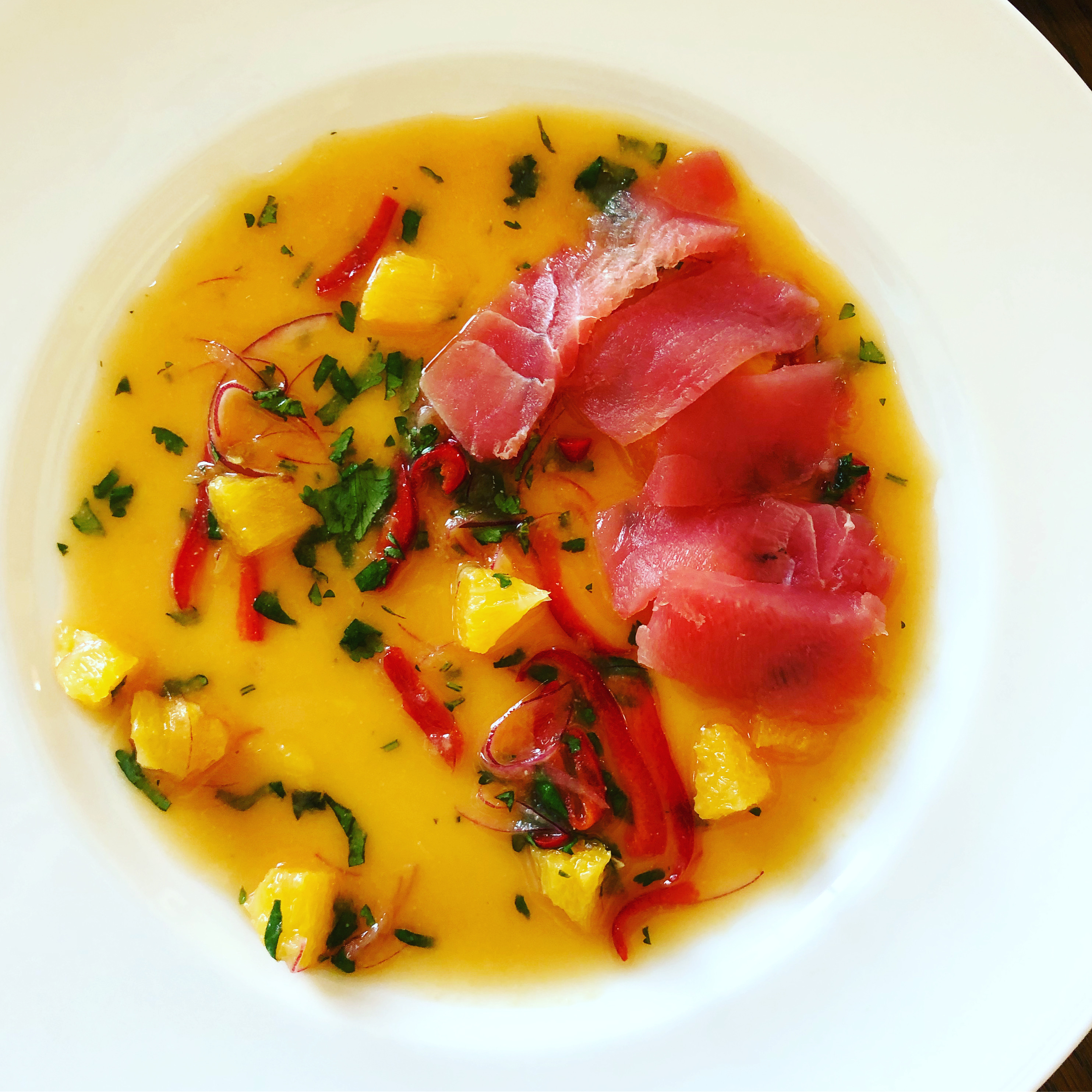 This is my Peruvian recipe of raw sashimi in Miso and orange juice.