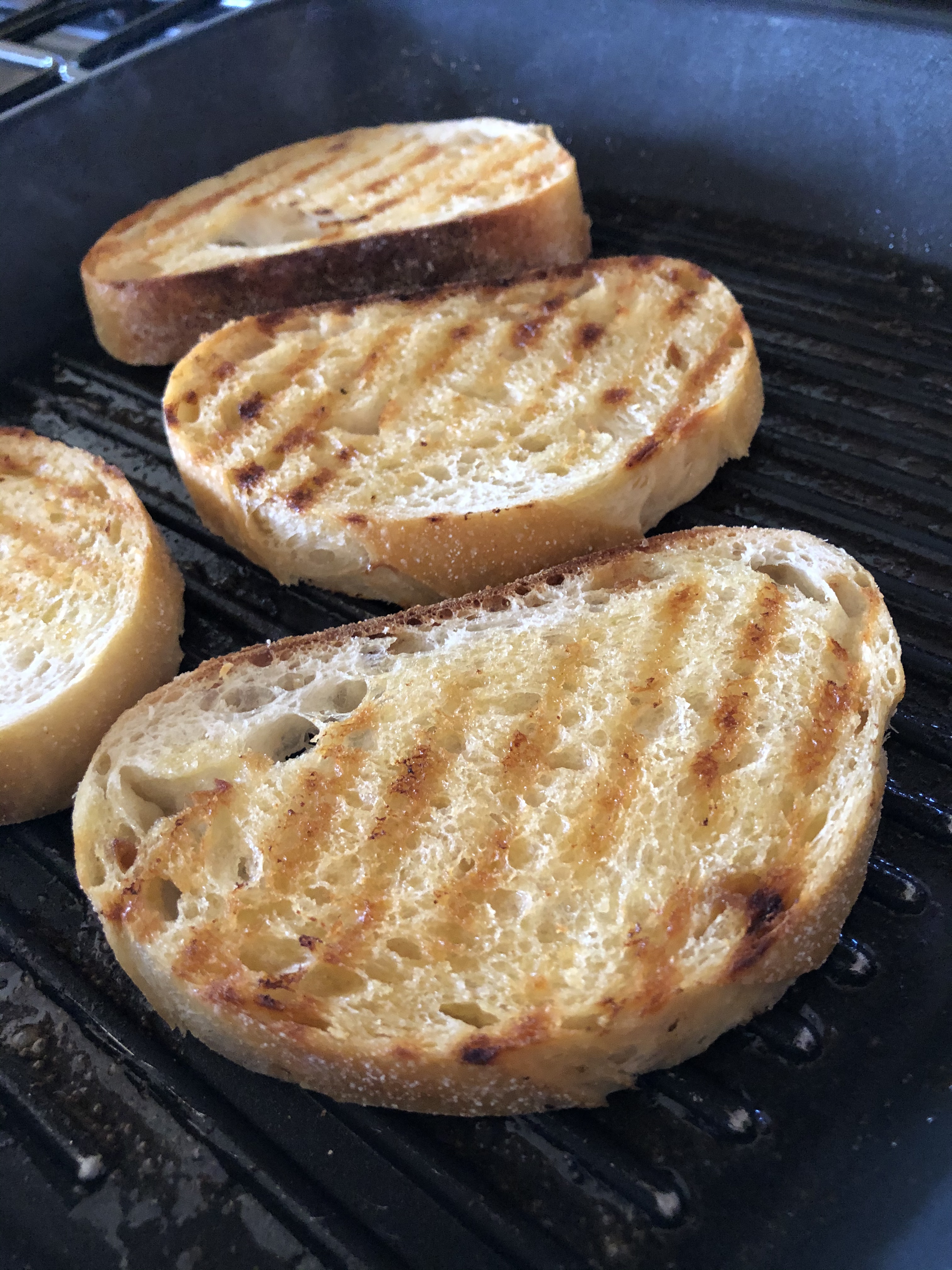 - I like to toast my bread in a hot scorching pan with a bit of butter to create a char.