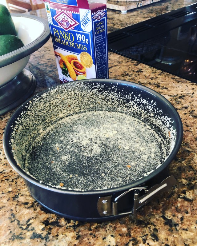 - Butter the bottom and sides of a 9-inch springform pan and coat with the breadcrumbs, tapping out the excess.