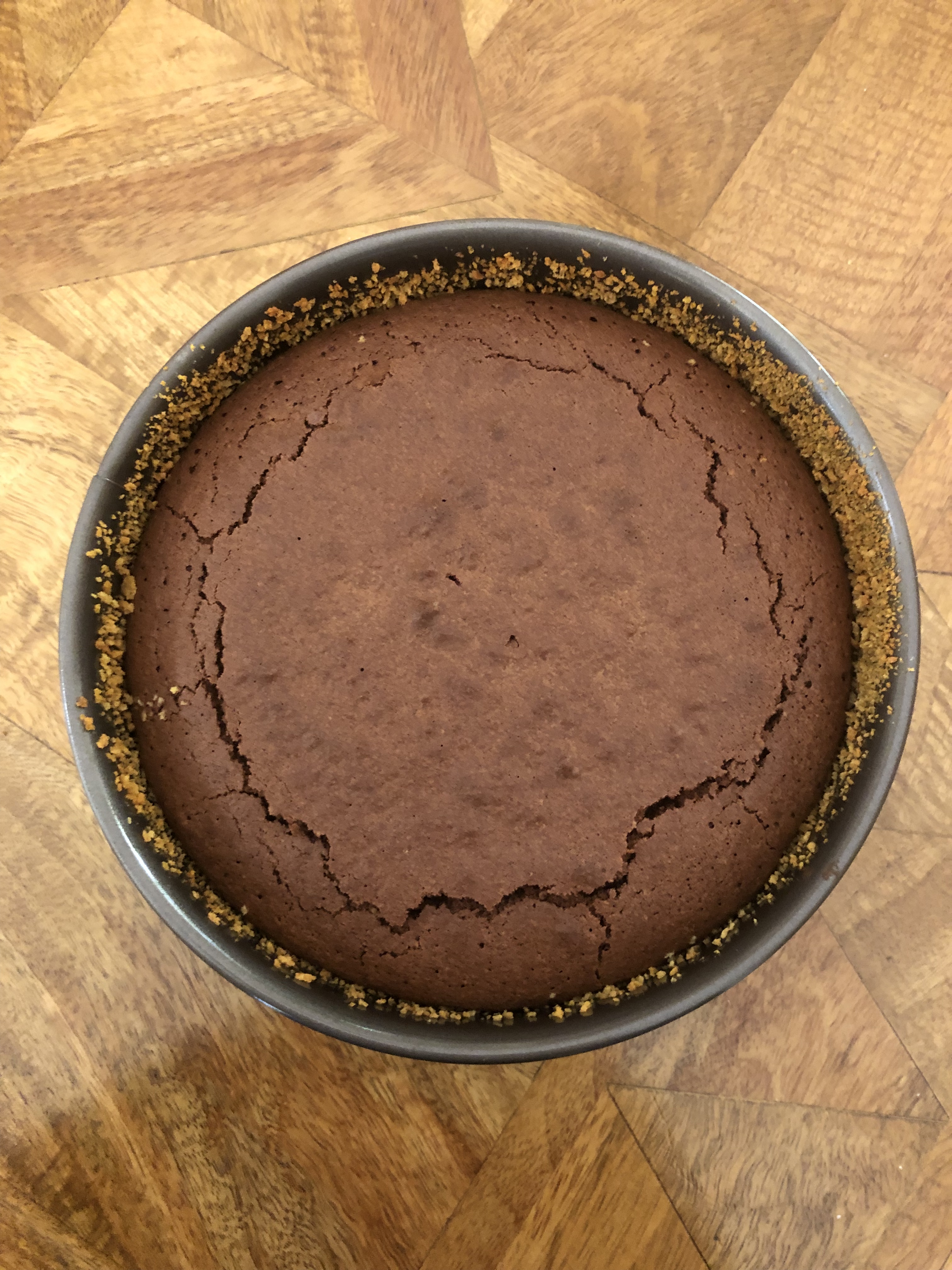 - Spread the batter in the prepared pan and bake until the top is firm and cracked (a toothpick inserted into the cake will come out fudgy), 35 to 40 minutes.