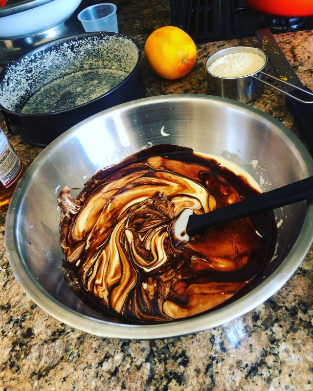 - Stir one-third of the whites into the chocolate batter, then gently fold in the rest.