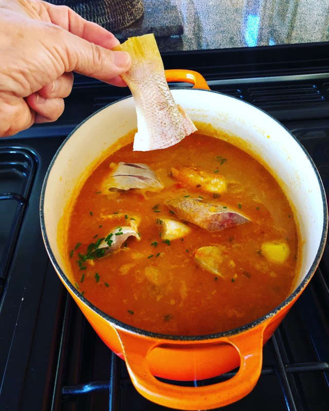 I love making this soup and it is my take on a Bouillabaisse or a Bourride from Provence. This recipe is different in the sense that I use the variety of fish and prawns as the main ingredients, using whatever fish I can find in whichever country I am living. I have been an expat wife for over 30 years and living an expat life has taught me to adapt and improvise.