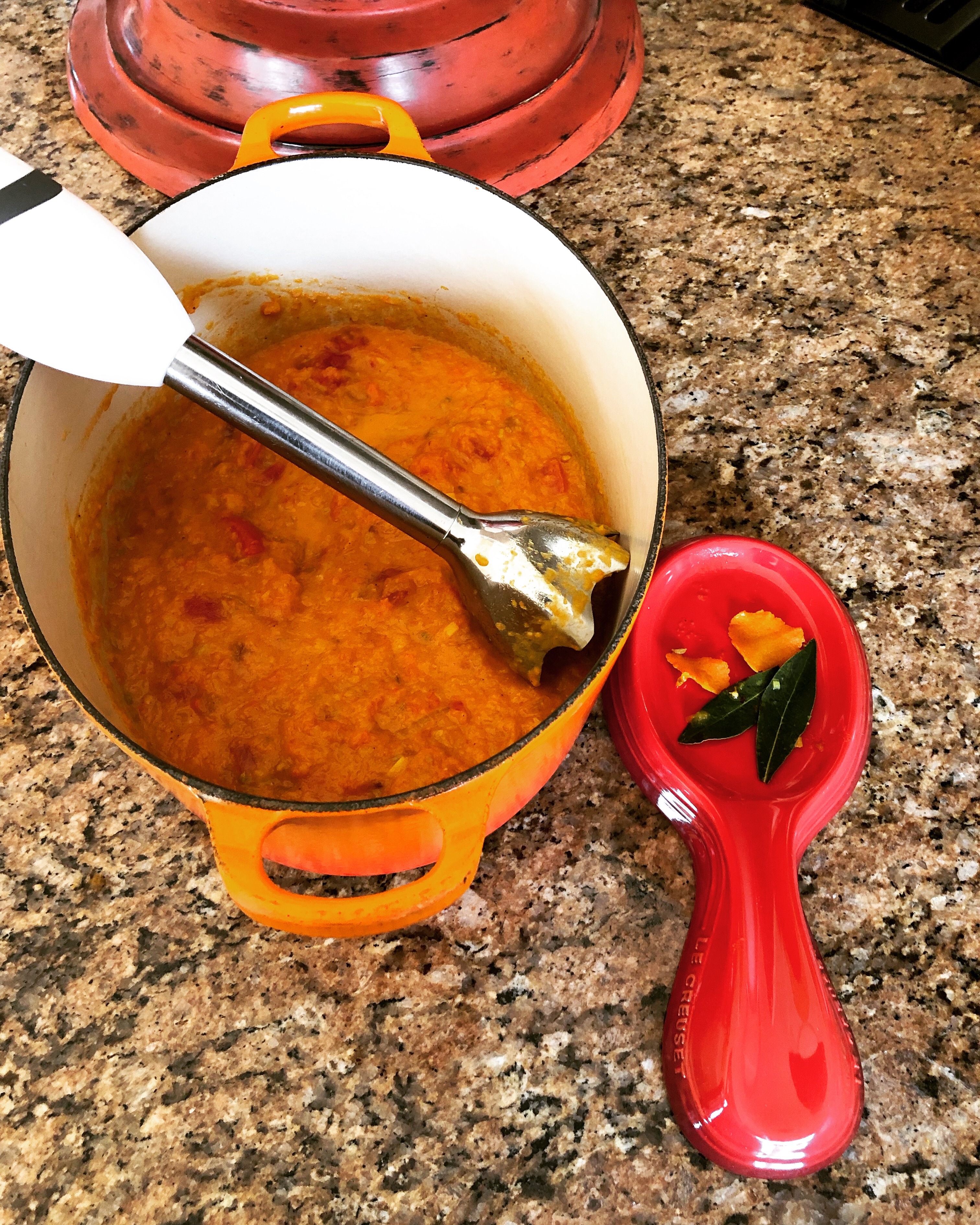 - It is important to remove the bay leaf and orange peal before you blend the mixture, otherwise the stock will be bitter.