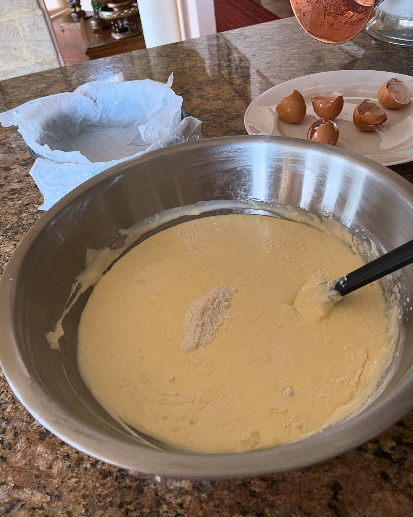 - With a spatula incorporate the sifted flour until the mixture is lump free.