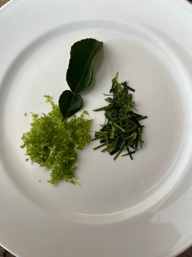 - 4 Kaffir lime leaves, finely shredded