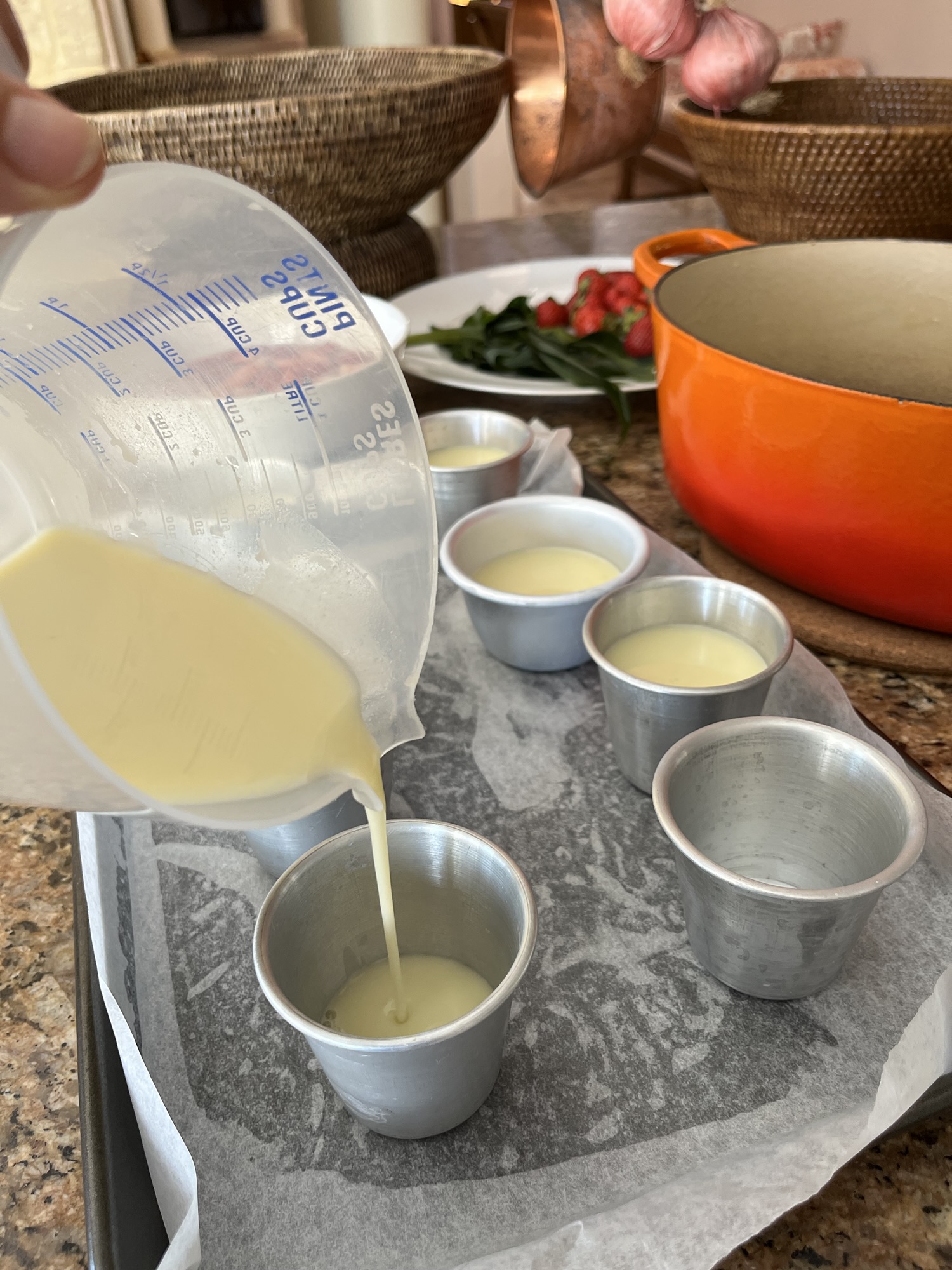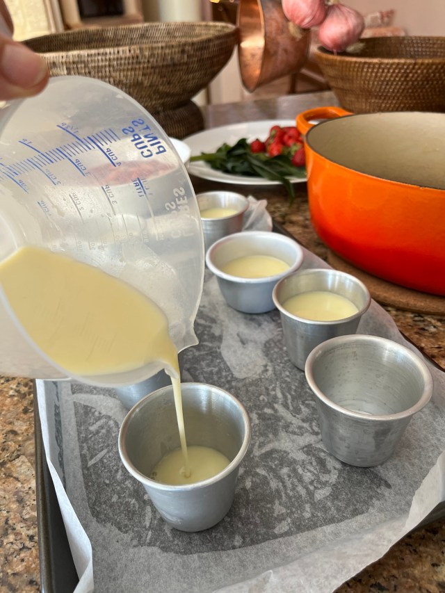 - Pour the mixture into a measuring jar and then pour the mixture into the moulds. I used traditional aluminium cylinders which I bought in India but you can use silicone moulds.