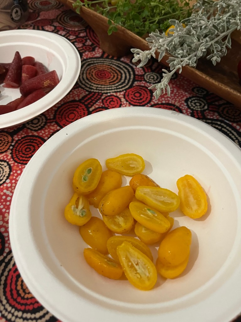 Dale is a Wardandi Bibbulmun woman whose traditional Aboriginal country is the Margaret River, Busselton area. She spent many years gathering knowledge from her elders. Her passion for bush food is contagious. The talk was an incredible sensory experience of taste and sniff. We were encouraged to touch, smell, and taste plants that the traditional owners of Australia commonly use for both nutritional and medicinal benefits.
