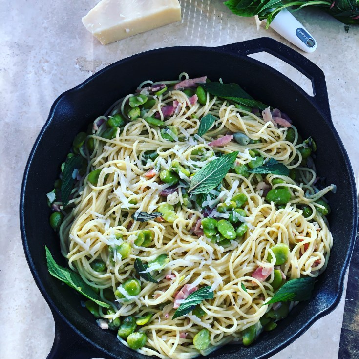 Broad beans and Pecorino cheese turn an ordinary pasta into something else. The cheese will make the beans sing! Ingredients 500grams frozen broad beans 250grams spaghetti 2 tablespoons olive oil 4 slices of bacon, diced 2 medium size shallots or a small onion, cut into very small cubes 2 garlic cloves, finely chopped 100ml white […]